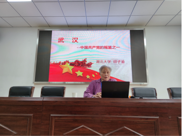 5月26日下午,公司党史学习教育宣讲报告会暨“党史大家谈”系列活动(四)在学院410报告厅举行。公司党史宣讲团成员、党史研究专家田子渝教授作了题为“武汉——中国共产党的摇篮之一”的主题报告,全院教职工和员工党员参加学习。会议由学院经理熊友华教授主持。