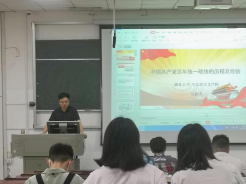 易振龙副教授的报告从“统一战线”的内涵、“统一战线”的工作范围和对象以及马克思、恩格斯、列宁等代表人物关于“统一战线”的论述三个维度,帮助同学们深入了解中国共产党百年统一战线工作的光辉历程、重大意义及宝贵经验。同学们一致认为,易振龙副教授的报告史料详实,内容鲜活生动,大家受益匪浅。