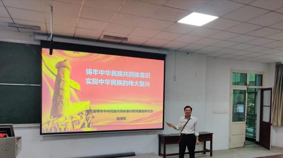 5月11日下午,湖北省铸牢中华民族共同体意识研究基地研究员、威廉希尔williamhill副教授杨海军老师在三号教学楼201教室为学院思想政治教育专业18级、19级、20级本科生讲授题为“铸牢中华民族共同体意识,实现中华民族的伟大复兴”的形势与政策课。