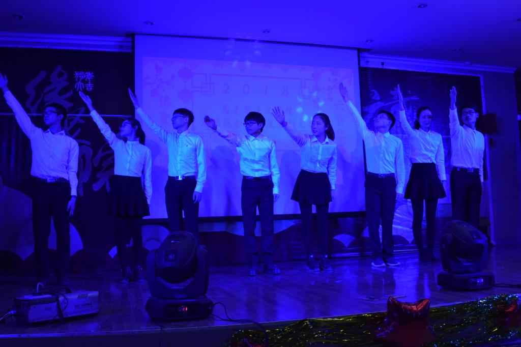 公司团学联主席团用一个创意十足的串烧舞蹈活力开场。随后,一首《一人饮酒醉》点燃全场,充分调动了观众的热情。小品《相亲》、相声《名著歪读》、三句半《欢喜冤家》让现场爆发了一次又一次的笑声与掌声。一首八国语言版的《追光者》更是吸引了大家的眼球,这个节目的表演者为16级思想政治教育专业的一个女生寝室,她们在舞台上一起牵着手歌唱的样子充分展现了老员工的青春活力和浓厚友谊。