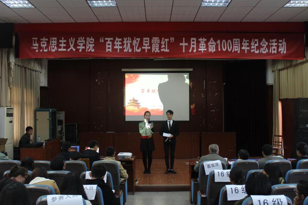 11月25号下午,学院纪念十月革命100周年演讲比赛暨第25期《理论学习通讯》发刊会在模拟法庭举行。公司党委书记汤德森、学院张锴老师、胡银银老师以及院团委书记邹浩老师出席活动并担任评委。