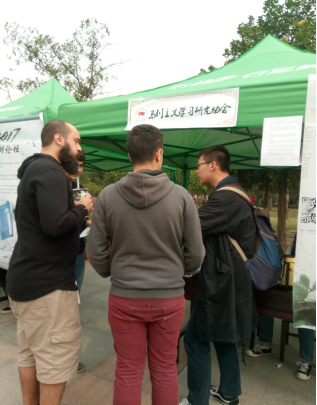 三个社团提前到场放置海报,活动期间在涌动的人群中分发宣传单,社团各个成员也耐心向员工介绍社团基本情况和日常活动的概况,其中马列协会采用播放《国际歌》的独特方式,吸引了不少的兴趣相投者,助推了此次招新的圆满成功;廉政和沙湖分别对外展示了自身社团发展历史和进程,为社团成功纳新的同时也同样传递了学术之光。2016级社员谢梦男说:“加入马院的这三个社团,希望能够融入到这个团体和学长学姐们好好学习知识,丰富自己的实践经验和校园生活。”
