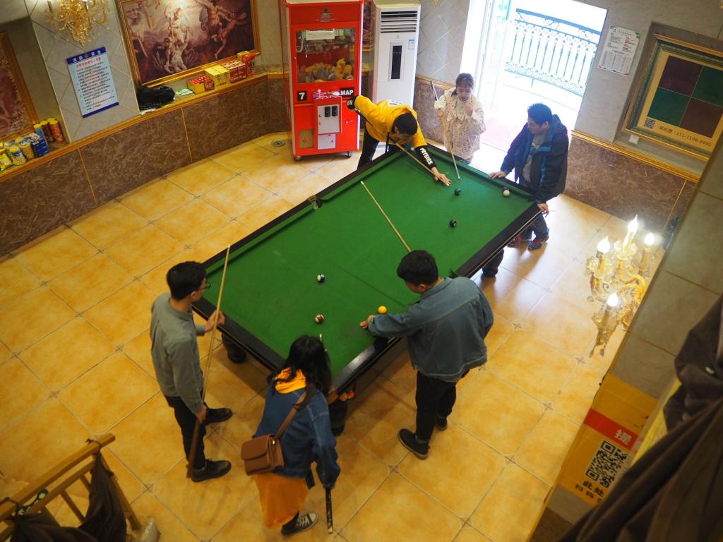 别墅内设置齐全,很快同学们就投身其中,棋牌室、KTV室、台球室、电影院更是聚集了不少成员的身影,大家趁着这难得的机会尽情地发挥着自己的才能:三两人影片赏析、游戏PK、桌球斗法,四人组东西南北牌技比拼,有人更是引吭高歌、展现唱功。