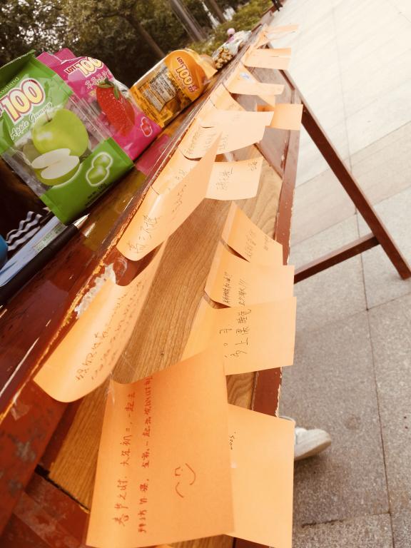 本次活动除了弘扬雷锋精神和介绍雷锋故事之外,还延续了往年的游戏传统。“扔骰子讲公益故事”、“想对高三学子说的话”以及在“纸上写想做的公益”等游戏。