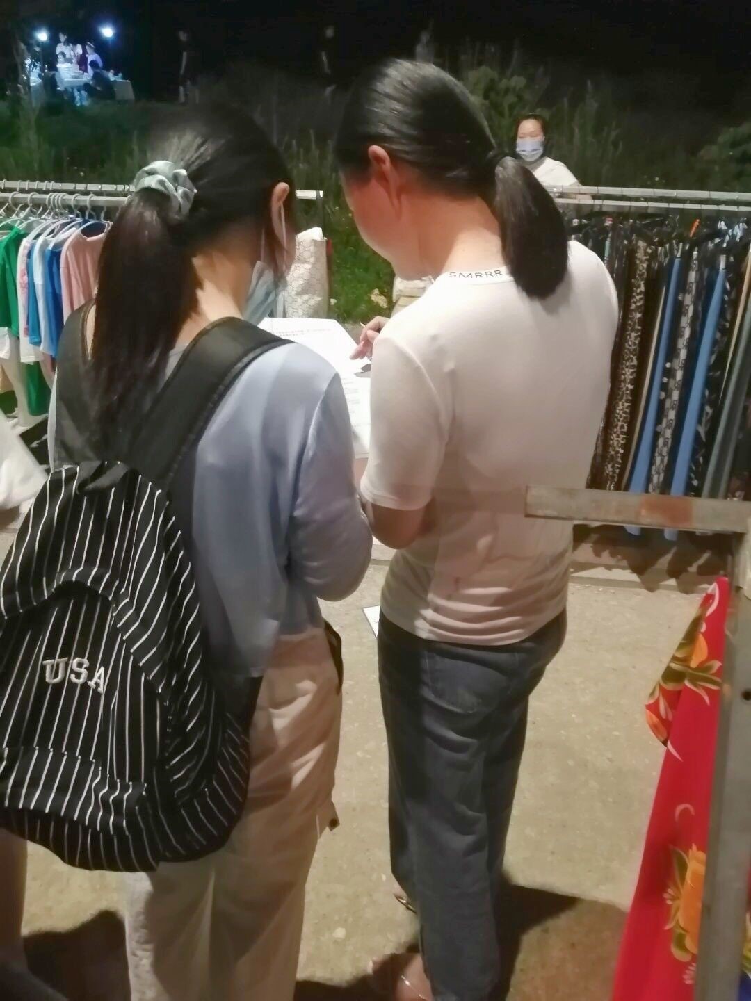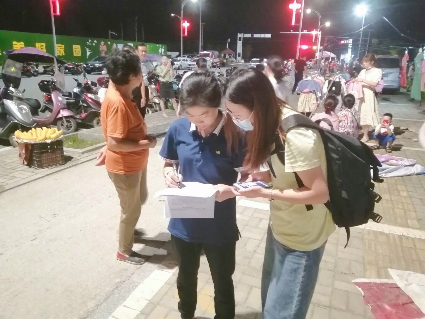 (图为调研队队员“地摊一条街”发放调查问卷)
