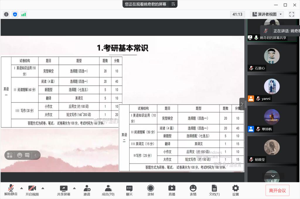 8月12日晚9点,威廉希尔williamhill举行2019级思政专业考研考公分享会,邀请2017级艾斯卡尔和姚奇君两位学长分别就考公和考研进行经验分享,其中艾斯卡尔学长已考取咸宁市发改委选调生,姚奇君学长已考取中共中央党校(国家行政学院)研究生,公司党委副书记、2019级思政班班主任晏妮老师以及思政1901班全体同学参加。