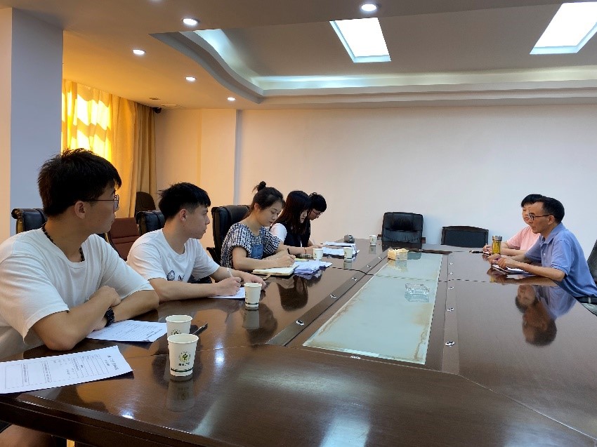 (图为社会实践团队与夷陵区农业技术服务中心钟主任座谈会)