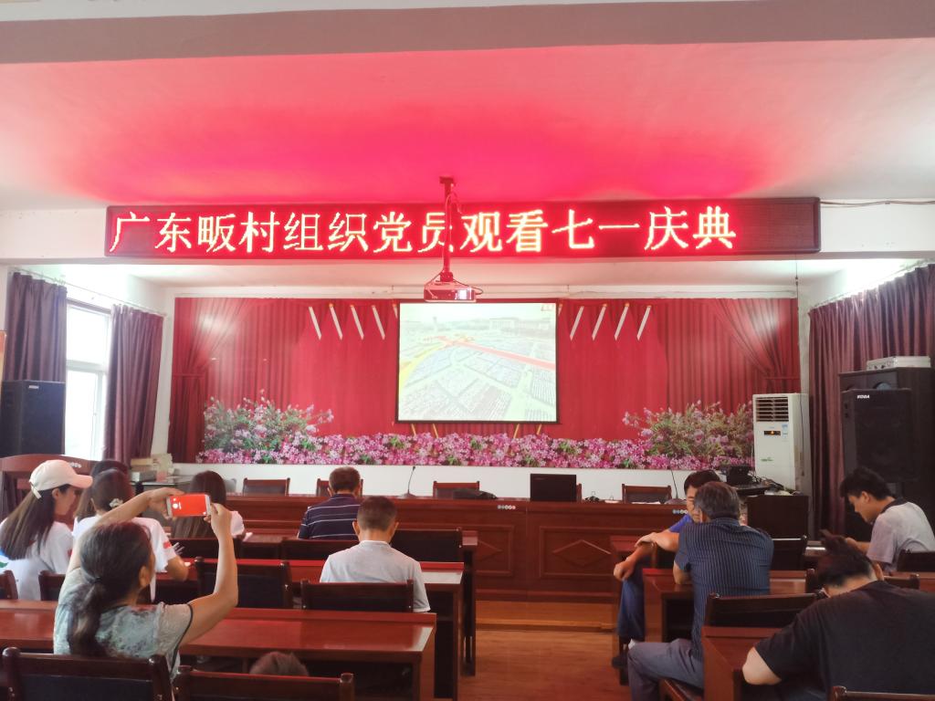 在广东畈村陈声和支书的带引下,我们来到了该村村委会三楼会议报告厅同该村党员及群众代表一起观看“七一庆典”直播。