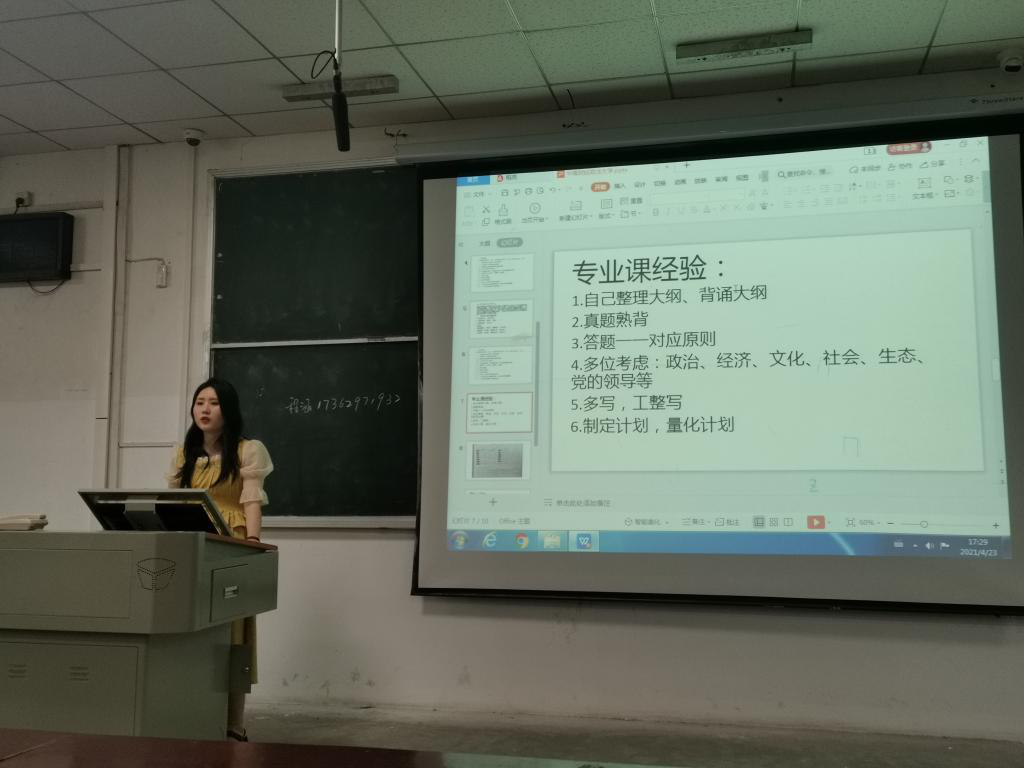 4月23日下午,为了进一步加强学风建设,让同学们熟悉考研流程、学习考研经验,公司邀请“学长学姐帮你”行动计划成员李楚芸、何宇涵、徐梦瑶、程涵、姚奇君、杜进6位上岸学子,面向大二大三年级举办了考研经验分享会。