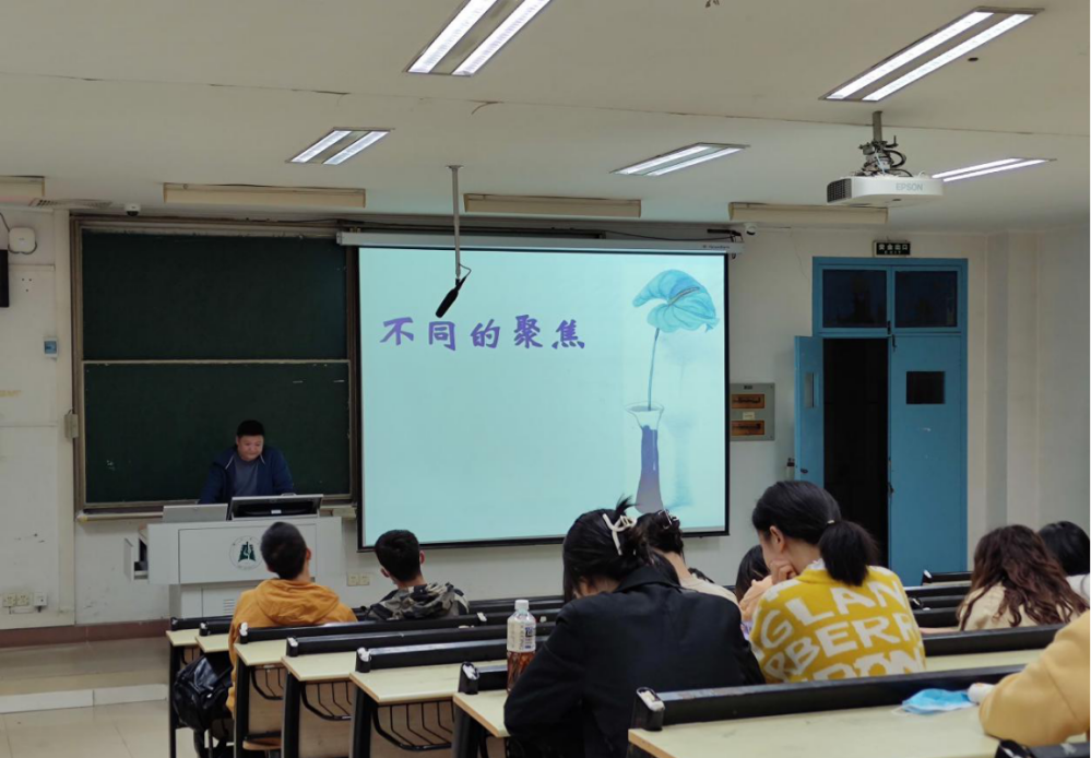 讲座伊始,范磊老师向同学们展示了一组有关学习、社交、健康的压力测试图引导同学们进行压力自评,分析了压力的相关症状。随后,范磊老师压力的定义、压力是一把“双刃剑”和应对压力的有效方法方面展开讲座