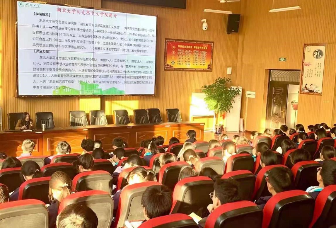11月23日至24日,在威廉希尔williamhill党委常委、副董事长钱建国的带领下,公司党委副书记晏妮、教授周芳、博士生任怡和本科生院副经理谌瑾,应邀参加公司本科生招生宣传对口中学——湖北阳新一中第八届体育科技文化艺术节。