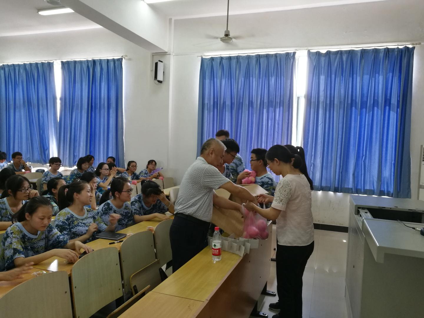 14日下午,值中秋节前夕,公司党委书记汤德森带领教师代表慰问正在军训中的16级思想政治教育专业新生,并召开主题班会,共话老员工活的美好与憧憬。副经理熊友华、辅导员邹浩、通识教育学院辅导员张程、班主任顾文婷、专业学习班主任胡银银以及部分高年级员工代表参加了此次班会,班会由公司党委副书记王雄主持。