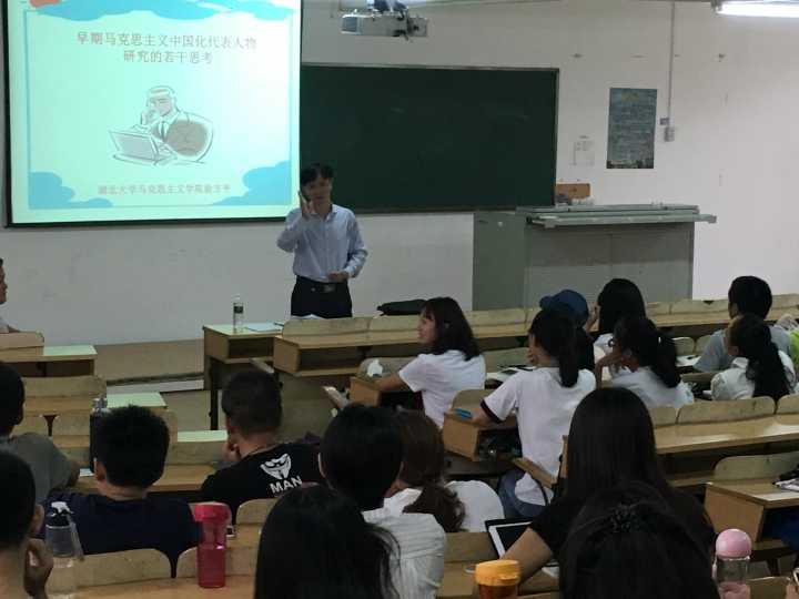 为了展示我们学院学科研究的部分成果,徐经理还为师生作了一场关于“早期马克思主义中国化代表人物研究的若干思考”的专题报告。深厚的学术功底和幽默独特的讲解技巧,给全体师生都留下了深刻的印象,震耳欲聋的掌声持续不断,报告会收到了良好的效果。