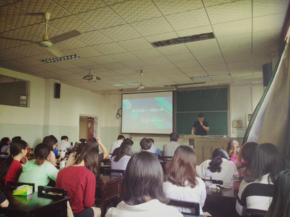 9个实习小组代表分别从各自的实习经历和感悟进行了总结和展示。通过一张张定格精彩瞬间的照片、一件件令人捧腹的片段、一段段触碰心灵的感悟,小组代表们将实习期间的所见所感带到现场,包括实习期间听课讲课的历程、与员工相处过程中的欢乐与烦恼、与指导老师的交流和讨论等等,真切地诠释了对实习生活的留恋和对老师们的感谢。每当小组代表谈到小组趣事时,总能唤起全体师生的共鸣,引发阵阵欢笑。