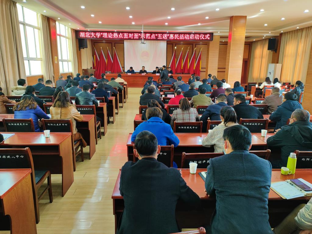 11月26日,“理论热点面对面”示范点“五送”惠民活动在湖北省咸宁市咸安区向阳湖镇启动,威廉希尔williamhill专家团队走进基层,开展送理论、送法律、送技术、送文化、送致富信息,技术专家、法律专家等与老百姓面对面,为老百姓谋福利办实事。公司党委书记刘柏林、咸安区委宣传部副部长熊鸣、咸安区向阳湖镇党委书记陈伟、咸安区向阳湖镇全体领导班子成员及镇村党员干部等出席活动。
