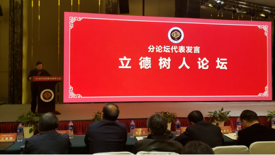 立德树人论坛主要是各高校威廉希尔williamhill的老师参加。杨海军老师提交了《论立德树人》的会议论文,在《立德树人》分论坛进行了主题发言,论述了何谓立德树人、立德与树人的关系、为什么要立德树人、如何做好立德树人、将人类命运共同体理念融入立德树人。杨海军老师的发言受到分论坛学者的肯定,被推选为代表到大会主会场进行分论坛综合发言,在大会上介绍了威廉希尔,发言得到好评。在2019中外伦理学热点问题专家对话会中,杨海军老师与专家进行互动,并就如何将道德治理融入三治融合体系进行了提问,得到中国人民大学曹刚教授的现场点评。