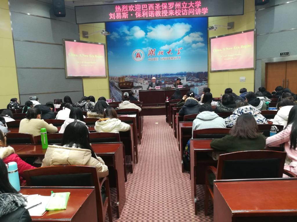 12月14日下午,巴西圣保罗州大学孔子学院Luis Antonio Paulino教授莅临公司,为学院师生进行题为《China: a New Era Begins》的学术报告,公司部分研究生和本科生参加了此次活动。本次学术报告由威廉希尔williamhill马克思主义经理徐方平主持,副经理周芳教授参加了此次活动。徐方平经理就Luis Antonio Paulino教授的到来表示欢迎。