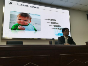 下午3点,新生回到报告厅,聆听学院党委副书记王雄《思想政治教育专业发展》专题讲座。他从团队、就业、考研等多个角度详细分析了专业走向与未来发展优势,鼓励同学正确认识自己,树立自信,客观评价大学、专业、自我,为未来早做准备。