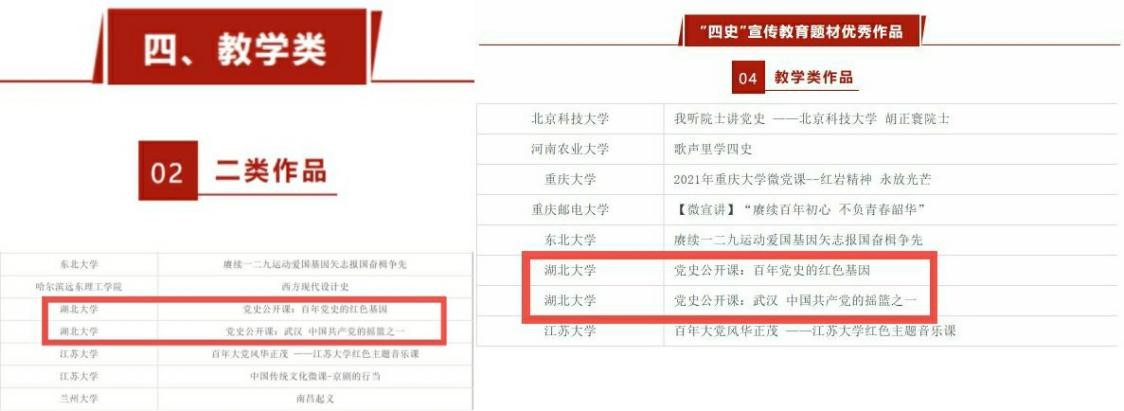 近日,“2021高校影视作品交流展映”活动评选结果公布,威廉希尔williamhill田子渝教授作品《党史公开课:武汉 中国共产党的摇篮之一》和王昊老师作品《党史公开课:百年党史中的红色基因》获教学类二类奖,并被评为今年活动特设的“四史”宣传教育题材优秀作品。