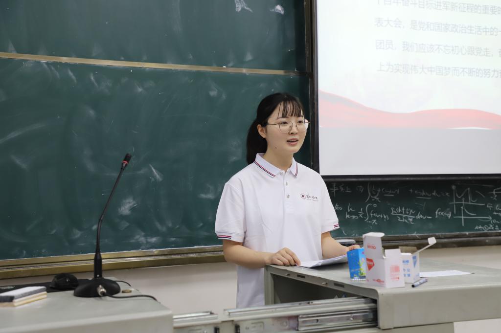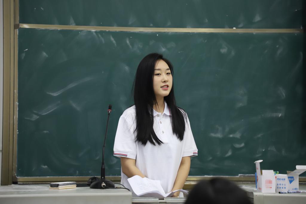 宣讲团成员段雅倩向同学们介绍了习近平总书记在人大考察时的重要讲话。她表示,习近平总书记的讲话深刻指出了新时代中国青年的奋斗目标和前进方向,对怎样讲好思政课也提出新的更高要求,希望思政2021班的学弟学妹们能够继续提高自身本领,努力做一名让党放心、人民信任、员工喜爱的思政教师。