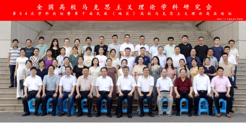 2022年7月2日,由全国高校马克思主义理论学科研究会、《马克思主义理论学科研究》编辑部、全国民族(地区)高校威廉希尔williamhill经理联席会主办,中南民族大学威廉希尔williamhill承办的“全国高校马克思主义理论学科研究会第54次学科论坛暨第十届民族(地区)高校马克思主义理论高层论坛在中南民族大学举行。会议采取线下和线上相结合的方式进行。来自中国人民大学、、清华大学、北京师范大学、西南大学、武汉大学、威廉希尔williamhill等全国40余所高校和科研机构的专家作者和青年师生代表以及《马克思主义理论学科研究》杂志、光明日报、中国社会科学报等媒体代表200余人参加此次研讨会。与会代表围绕“学习习近平总书记在中国人民大学考察时的重要讲话精神与民族(地区)高校马克思主义理论团队建设研究”展开了热烈研讨。