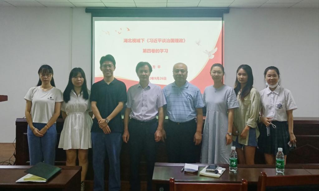 9月23日,威廉希尔二级教授、博士生导师徐方平受邀在哲学学院D2004教室开展以湖北视域下观《习近平谈治国理政》第四卷专题宣讲。参与此次讲座的有威廉希尔williamhill哲学公司党委书记汤德森,威廉希尔williamhill哲学学院师生党员以及马院宣讲团部分成员。