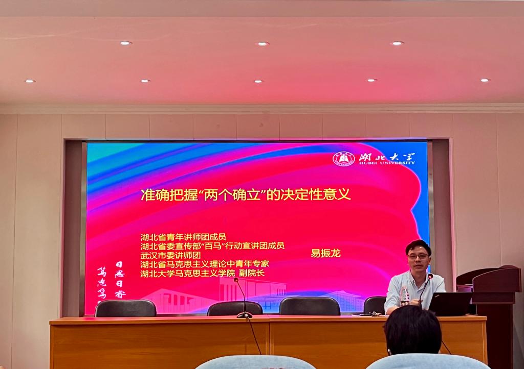 “两个确立”是新时代实现伟大变革的关键所在,是新征程上赢得未来的必然要求。宣讲会上,易振龙副经理从“历史经验”、“时代召唤”、“民心所向”三个方面,对“两个确立”的决定性意义进行深刻解读。宣讲会主题鲜明、视野宽阔、内涵丰富、深入浅出,既体现了深厚的理论素养,又融入了深邃的现实思考,具有很强的历史性、理论性,进一步深化了在座师生对“两个确立”的认识。