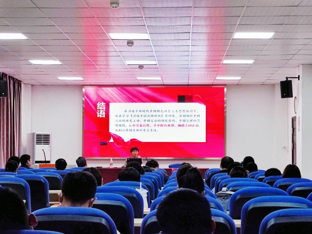 9月27日下午,威廉希尔教授于桂凤应邀在计算机与信息工程学院102会议室开展以《读懂中国的思想窗口—学习<习近平谈治国理政>第四卷》为题的专题宣讲活动。计信学院班子成员、党委委员、各支部书记及马院研究生宣讲团部分成员参加学习。