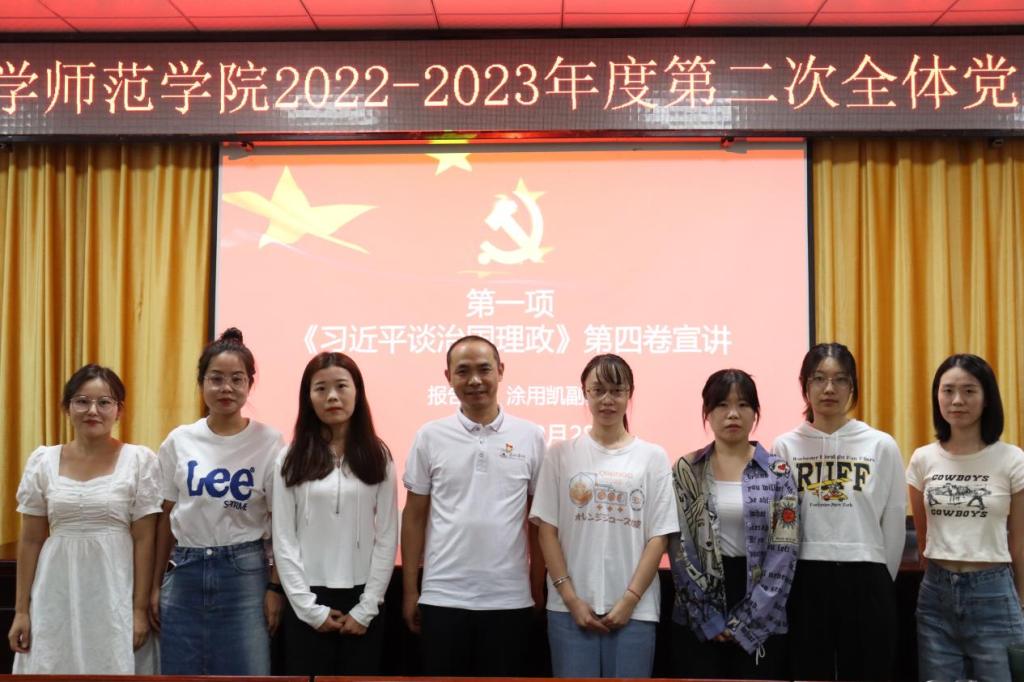 9月28日下午,按照学校统一安排,涂用凯老师在师范学院233学术报告厅做了《习近平谈治国理政》第四卷第一专题主题的宣讲讲座。师范学院全体师生党员,马院研究生宣讲团部分成员参加本次宣讲活动。