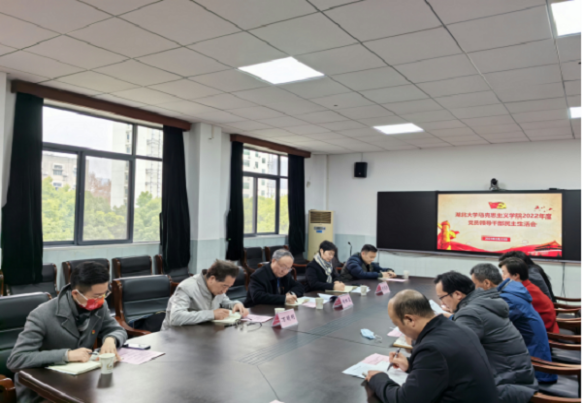 校党委书记谢红星进行点评。他指出,本次民主生活会严肃认真,组织有序,班子成员批评与自我批评态度诚恳,不穿靴戴帽,氛围好,效果明显,为开好一场高质量的民主生活会作出很好的示范。他对学院班子成员提出三点要求:一是要深入学习习近平新时代中国特色社会主义思想,在学深悟透上下功夫。学院班子成员要进一步提高政治站位,牢固增强“四个意识”、坚定“四个自信”、做到“两个维护”,充分发挥学科专业优势,广泛宣讲党的二十大精神,深化理论研究阐释,形成一批有影响的研究成果。二是要统一思想,形成共识,强化责任担当。要认真梳理总结民主生活会上检视出来的问题,将问题项目化、清单化,做好落实整改,并及时通报民主生活会召开情况。三是要践行以人民为中心的理念,谋划事业高质量发展。学院在第五轮学科评估中取得良好成绩,要以此为新的起点,凝聚师生力量,加强团队建设,为学校实现一流学科突破做出贡献。
