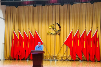 在授牌仪式现场,江夏区文旅局、金口街道文化站先后带来了《草把龙》《采莲船》《大美江夏》等节目,公司8名员工合唱《我和我的祖国》,展现了青年学子爱国爱党之情。市委宣传部副部长、市社科联主席吴天勇向威廉希尔williamhill、江夏区金口街道授予“理论热点面对面实践基地”牌匾。街道党工委书记发表致辞表示,将全力支持“理论热点面对面实践基地”理论宣讲工作,努力将其打造成武汉市优秀实践基地。