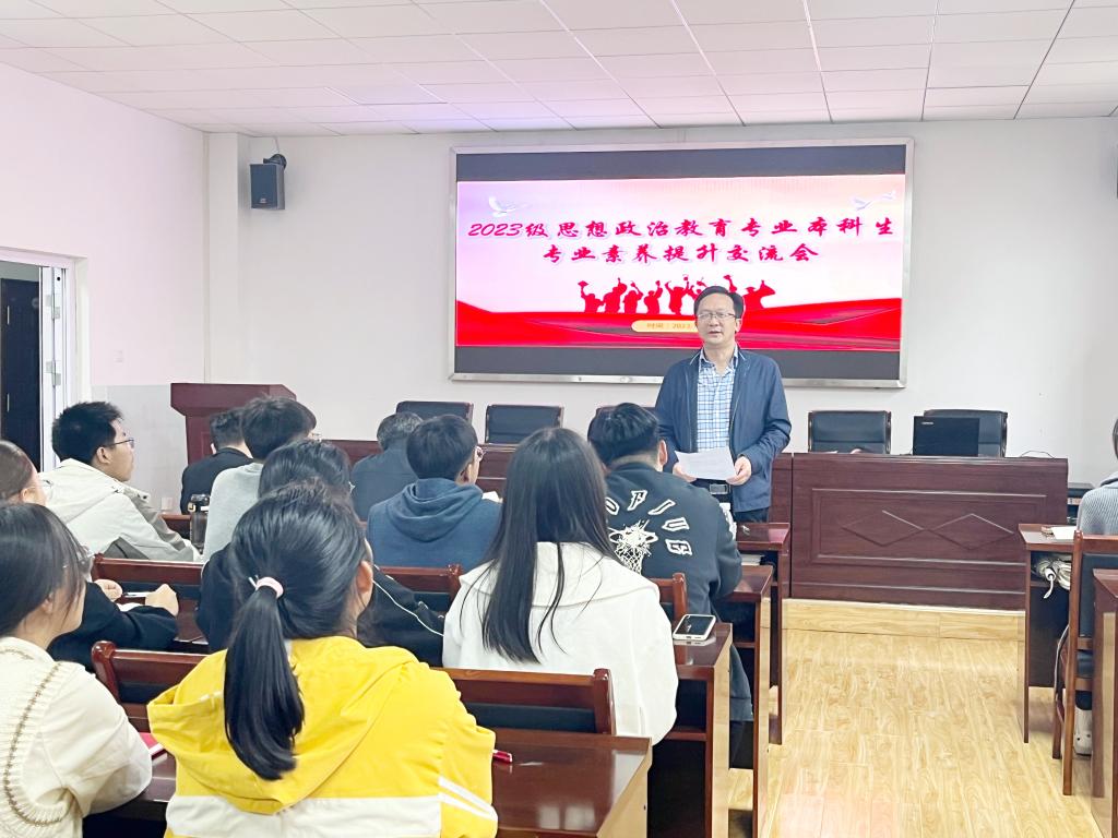 10月7日,公司举办2023级思想政治教育员工专业素养教育活动,让同学们进一步了解学院办学情况及学科专业建设情况,增强专业学习热情和动力。公司党委书记刘柏林、经理熊友华、党委副书记晏妮、副经理易振龙、副经理徐信华、辅导员冷自衍、通识教育学院辅导员潘洒及2023级思想政治教育专业全体员工参与此次活动。会议由公司党委副书记晏妮主持。