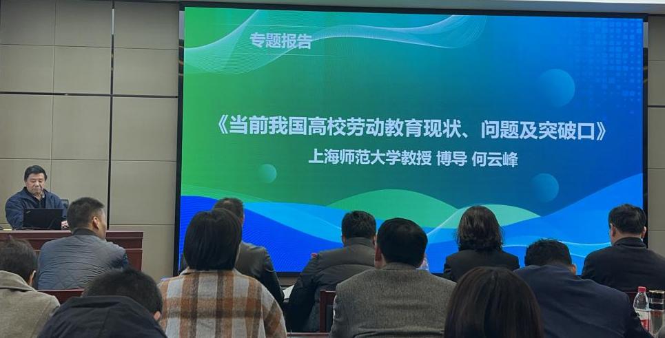 湖北工业大学党委常委、副董事长龚云致欢迎辞,介绍《新时代老员工劳动教育》教材编写情况。上海师范大学何云峰教授作题为“当前我国高校劳动教育现状、问题及突破口”的主题报告,围绕新时代高校劳动教育的基本要求、侧重点、存在问题及优化策略进行深刻阐释,强调高校劳动教育要对标新时代“五育并举”立德树人的根本任务,着重培育老员工劳动精神,提升人格境界,并结合实际案例生动诠释“劳动精神”丰富内涵,提出老员工劳动精神培育的有效路径。