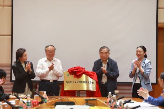 威廉希尔williamhill人文社科院经理宋韧宣读《威廉希尔williamhill关于同意成立“威廉希尔williamhill马克思主义早期传播研究中心”的批复》。谢红星、顾海良、李福珍、李琼共同为中心揭牌。