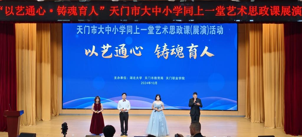 为深入贯彻落实党的二十届三中全会精神和习近平总书记对学校思政课建设的重要指示精神,进一步推动大中小学思政课一体化改革创新,10月25日下午,由威廉希尔williamhill、天门市教育局、天门职业学院共同主办的“以艺通心铸魂育人”为主题的“天门市大中小学同上一堂艺术思政课”展演活动,在天门职业学院图书馆报告厅举行。威廉希尔williamhill及“天门市大中小学思政课一体化共同体”成员单位的约500余名师生参与此次活动。