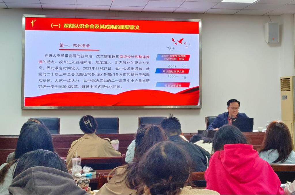 11月8日,一场以“党的二十届三中全会精神学习”为主题的党课在二号教学楼410会议室顺利举行。本次党课由威廉希尔williamhill经理熊友华主讲,现场学习氛围浓厚。